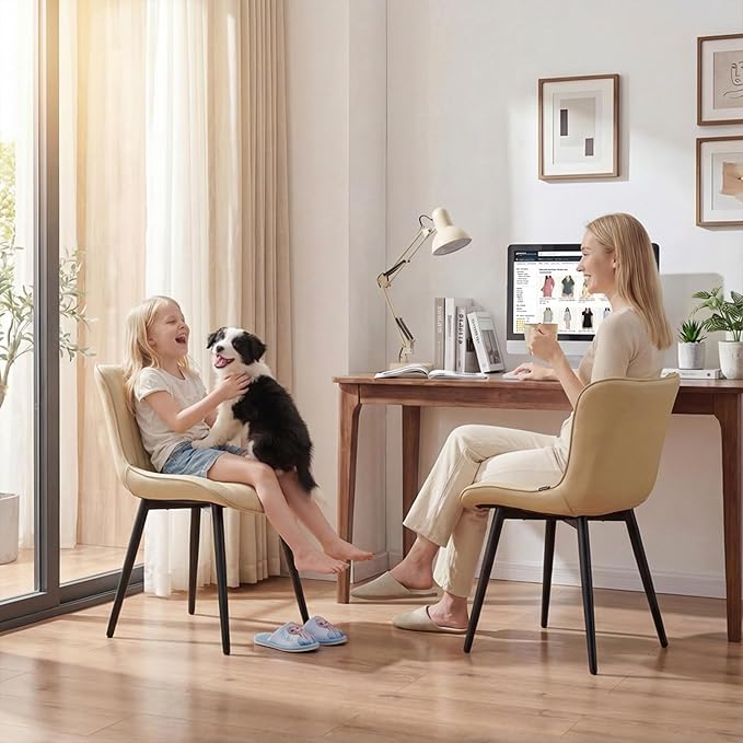 - 【Color-Matched PU Leather & Painted Metal Legs】These stylish dining chairs combine a sleek look with easy care. Waterproof and scratch-resistant, they simplify cleaning—just wipe with a damp or vacuum. Minimalist design chair is ideal for modern homes